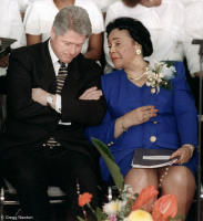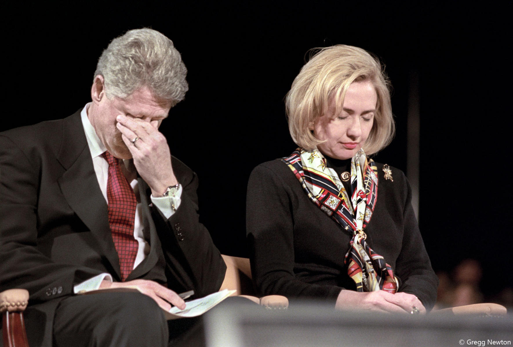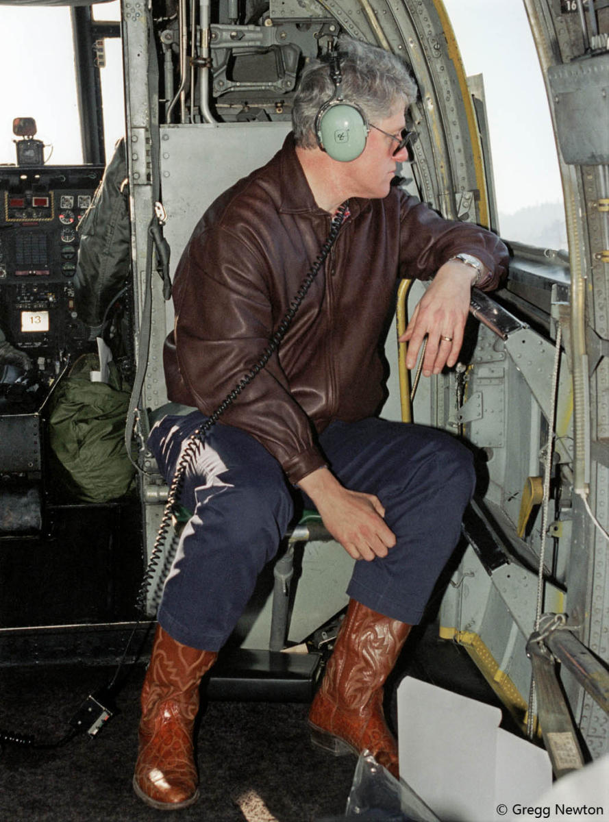 Former U.S. President and Nobel Peace Prize winner Jimmy Carter. Umbrella malfunction; first lady Nancy Reagan in Portland, Oregon President GHW Bush and EPA Administrator William K. Reilly at the Earth Summit in Rio. President Bush and General Colin Powell in Washington. A thumbs-up after his annual physical. President Clinton welcomes French leader Jacques Chirac to the White House. With new NAACP leader Kweisi Mfume during his swearing-in ceremony. At a leadership conference on violence. Alongside Coretta Scott King at the Ebeneezer Baptist Church in Atlanta. The presidential Cadillac limousine, referred to as "The Beast" On the White House putting green before a summer outing. Clinton and waitresses at 'The Varsity' in Atlanta. President Clinton amid honor guards in Brasília. Applauding Nelson Mandela as he departs the White House. Observing a flood-damaged area in Oregon. Clinton at the Tomb of the Unknown Soldier. With global leaders during the Summit of Peacemakers in Egypt. With Kim Young-sam on Cheju Island. Dinner at Akasaka Palace in Tokyo with Prime Minister Hashimoto. Clinton and statue of Peter the Great in St Petersburg, Russia. At the State Hermitage Museum Saint Petersburg, Russia. A stroll around the Kremlin in Moscow with President Yeltsin. With Chief of Staff Panetta at Red Square. Making a purchase at a bread shop near Red Square in Moscow. President Clinton hugs the son of a terrorist bombing victim. Somber moment during memorial service for the Oklahoma City bombing. In the Oval Office with Holocaust survivor Elie Wiesel. Steward opens the main door to presidential jet Air Force One. President Bush and media during East Room news conference in the aftermath of 9/11. A sullen President Bush, a month after the 9/11 terrorist attacks. Tossing the first pitch at the Nationals home opener. President Obama at Planalto Palace during state visit to Brazil. Obama greets children during state visit to Brazil. Supporters of President Trump observe his arrival in Florida aboard Air Force One. President Trump and the American flag. Textbook stare of President Donald J. Trump. President Trump; seemingly always ready for a fight...
